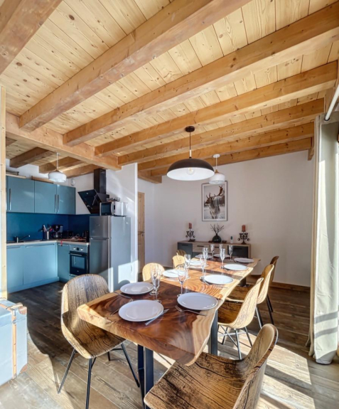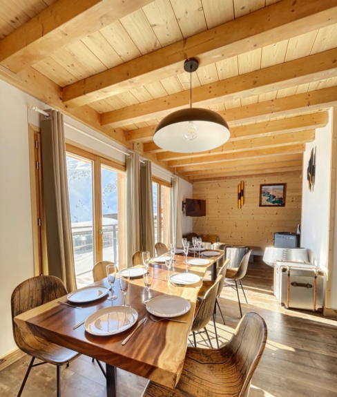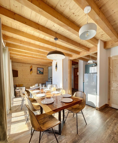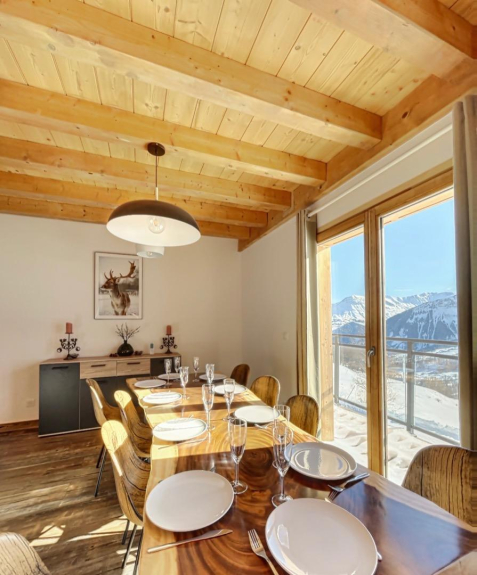 Savoyard chalet on 3 levels with a breathtaking view of the Aiguilles d'Arves and the surrounding mountains.