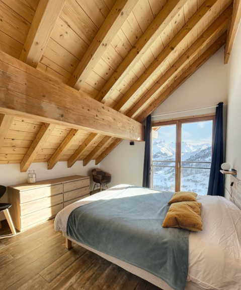 All the rooms of the Mauntenrojji chalet have an exceptional setting without opposite, with a clear view on the Aiguilles d'Arves and the surrounding mountains.