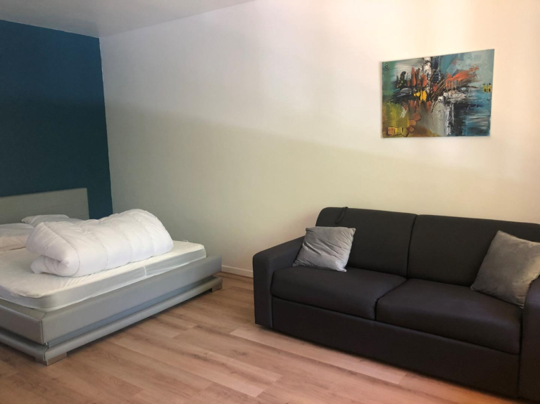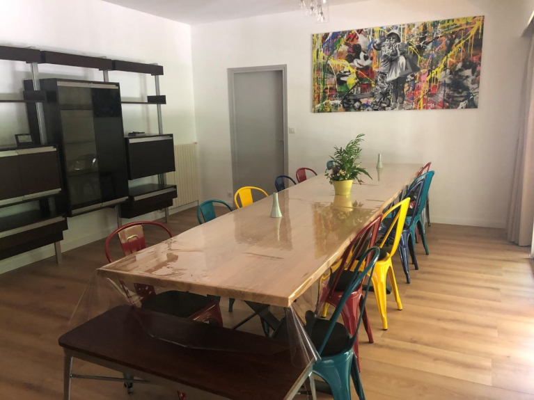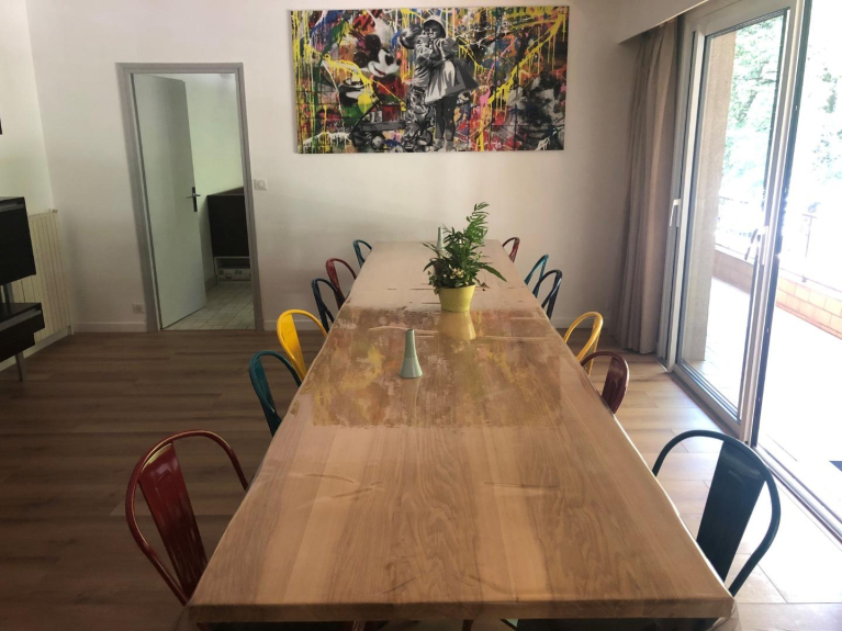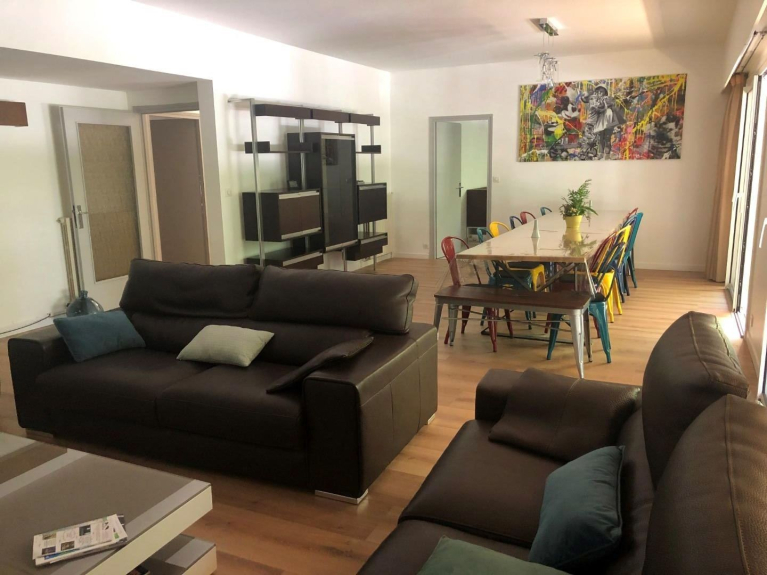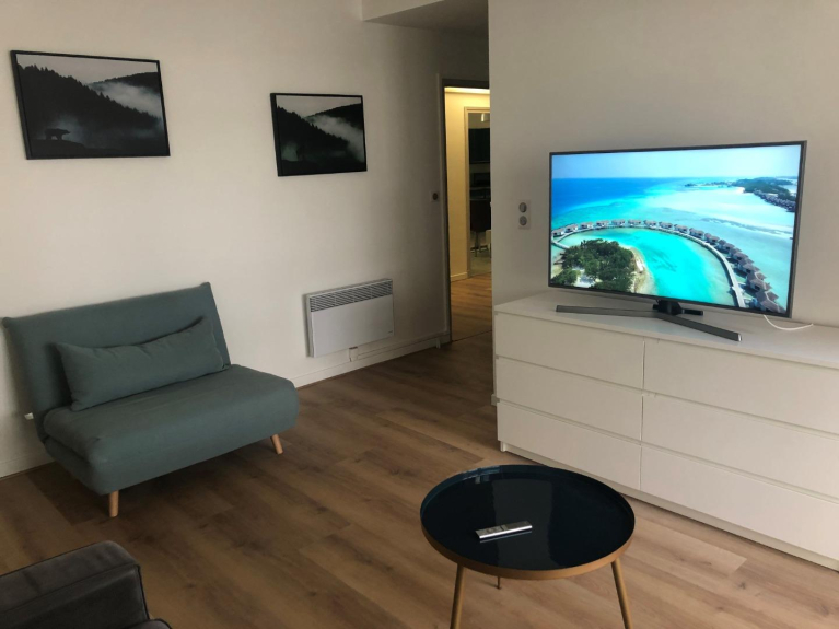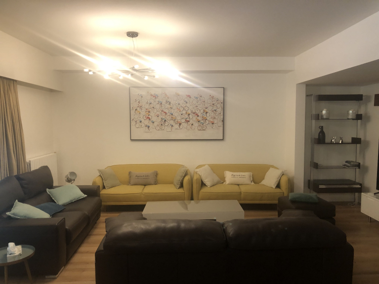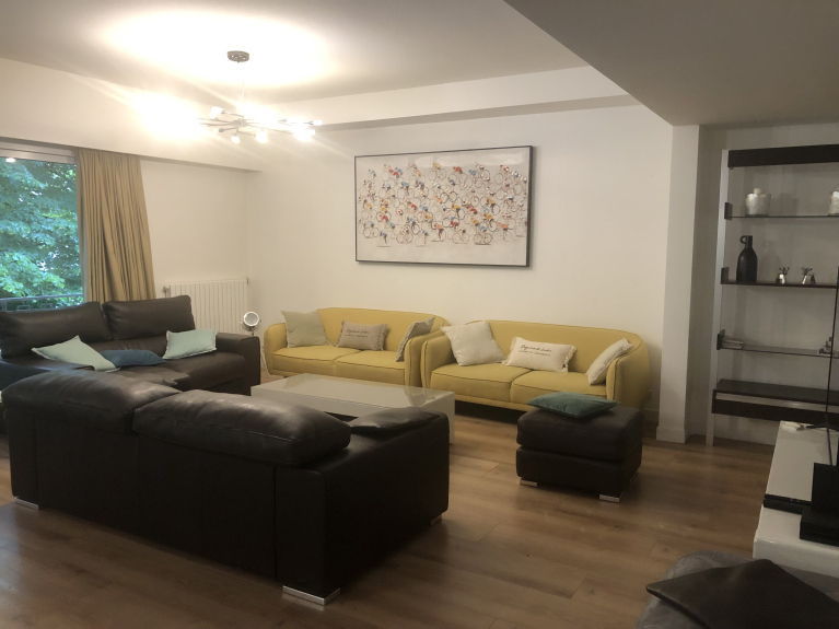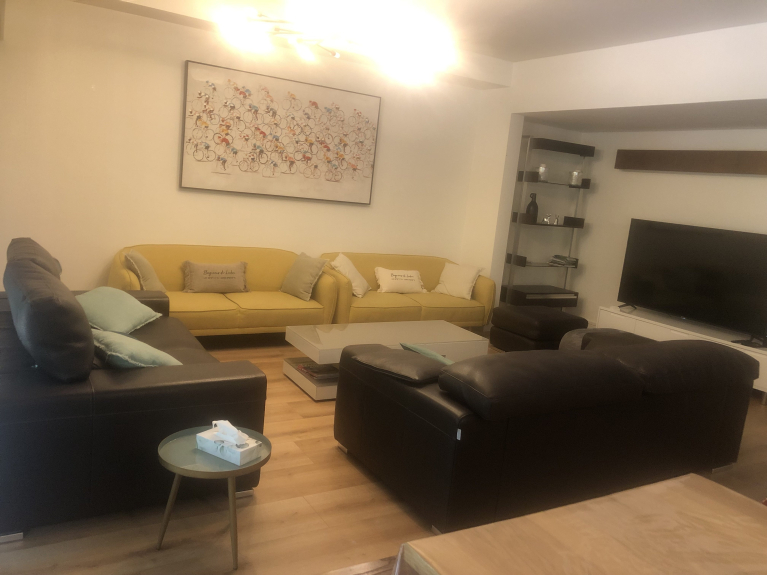 -55m2 living/dining room: 3 sofas, 170cm 4k TV and 4m table