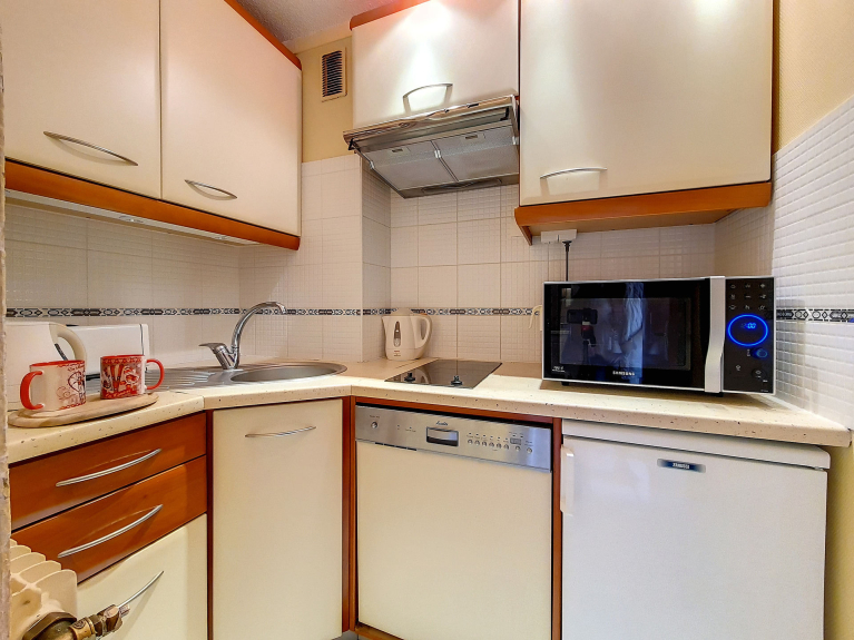 Independent kitchen 2 plates, refrigerator, microwave, mini dishwasher, toaster, kettle and coffee maker.