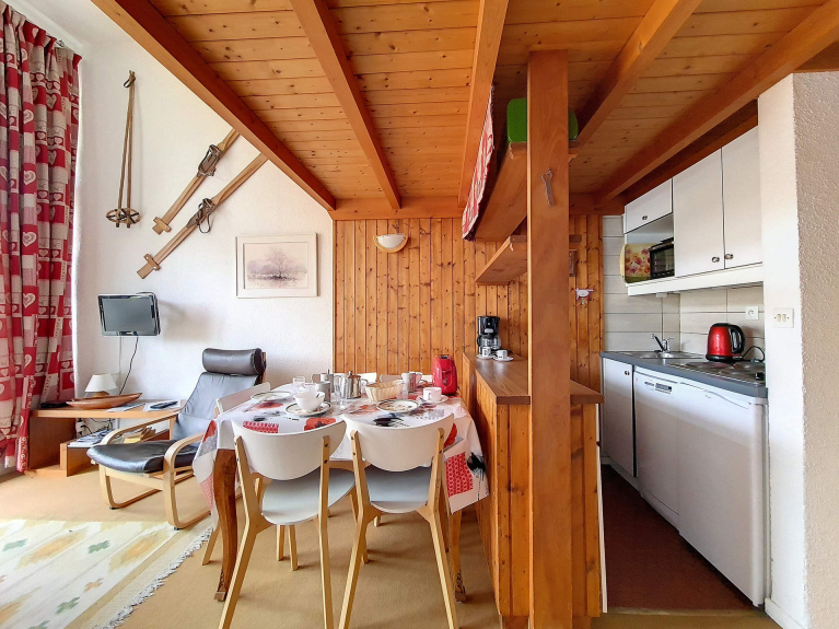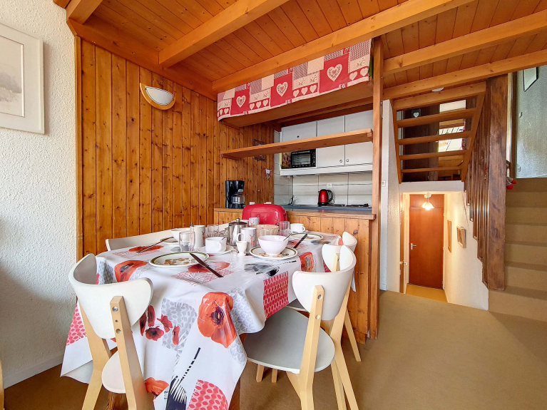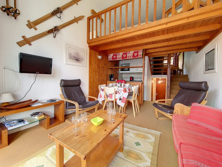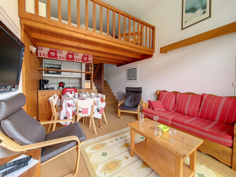 2 room duplex apartment of 37m² with a mezzanine of 8 m² (height less than 1.80m) for 5 people with a balcony facing South/West located on the 7th floor with elevator.