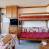 Built-in kitchen with 2 hotplates, mini-oven, refrigerator, dishwasher, toaster, kettle and coffee maker.