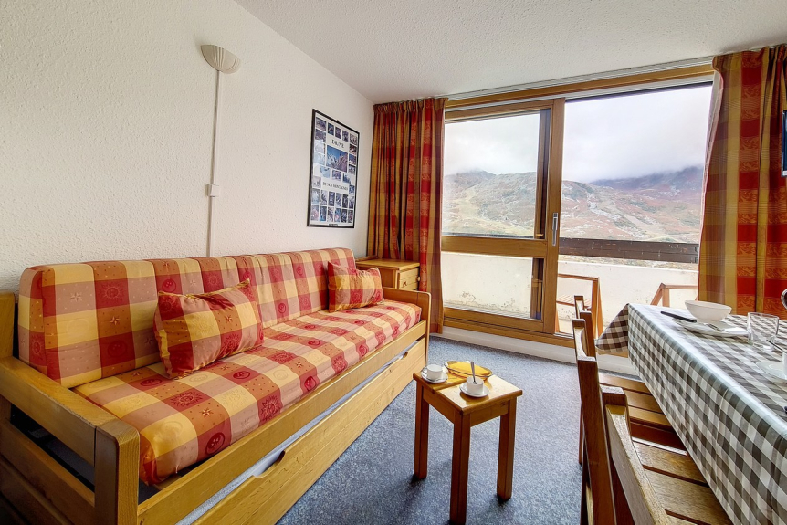 Living room : 1 single bed and 1 pull-out bed. Equipped with a television.
