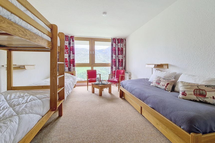 Bedroom 2 : 2 single beds + 2 bunk beds for 1 person. The high bed is not suitable for children under 6 years.