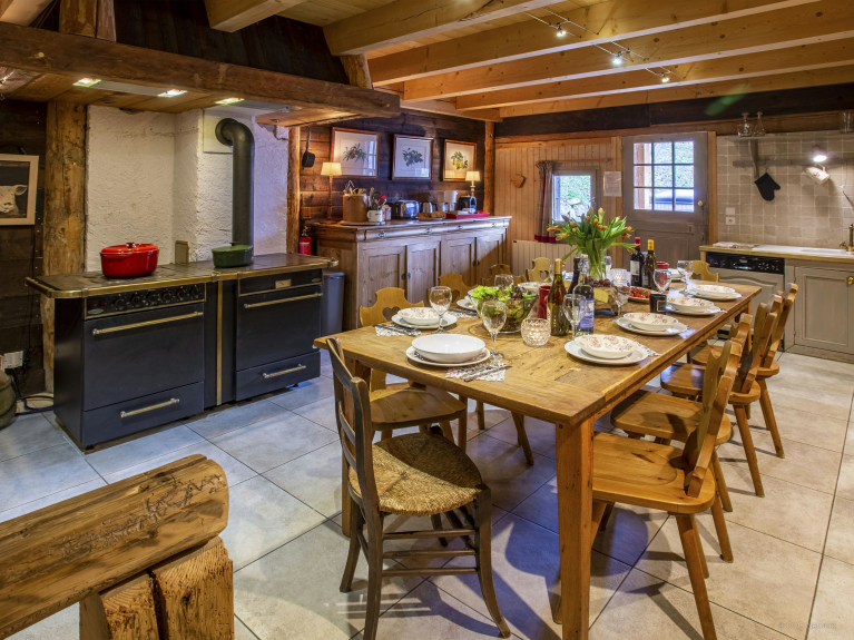 Please note that this rental is a first floor apartment in a chalet. A second apartment (Tournette) is located on the second floor. Chalet Étale, in keeping with the style of local properties of the period, has low ceilings by modern standards and small windows. Large groups can rent the two properties together: the Tournette apartment has two dining tables and numerous chairs, allowing 21 people to share meals.