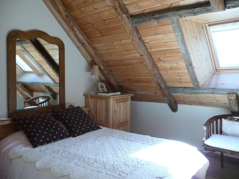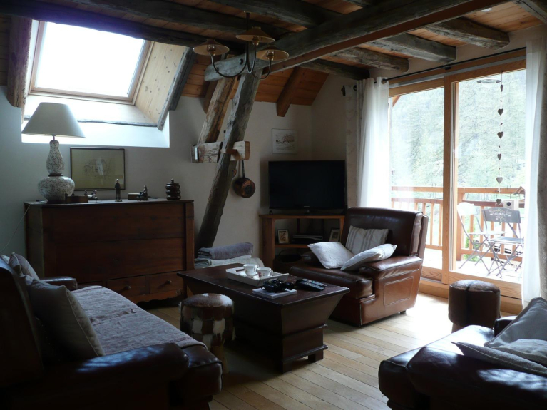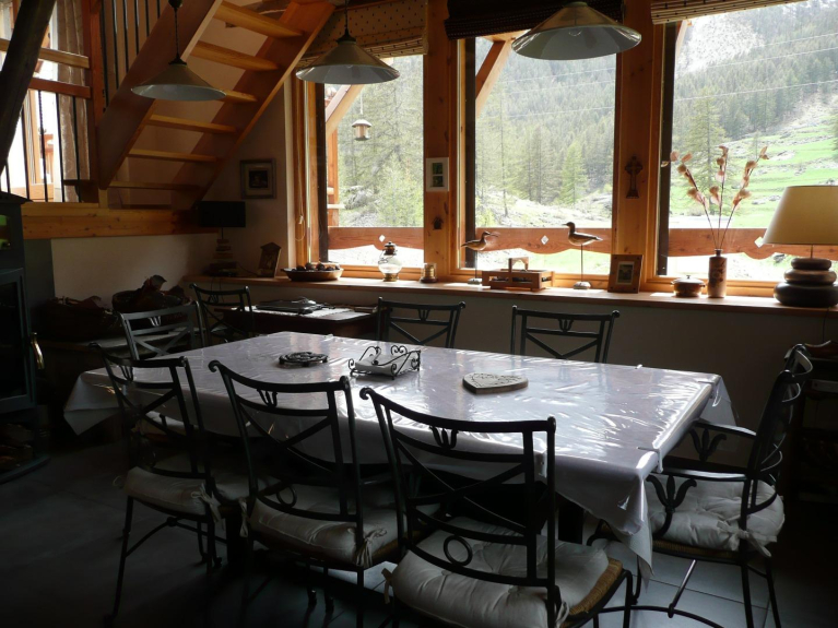 Old family farm built in 1866 located in the high valley of Serre-Chevalier (1630 m), classified 4 stars, CHALET atmosphere. Apartment n°1 of 150 M2, 4 bedrooms, 2 bathrooms. S-W exposure. Magnificent view on the surrounding mountains. Very large private fenced garden of 2000 m2 in front of the chalet. The apartment-chalet n°1 is located in the small hamlet of Les Boussardes, 5 kilometers from Monêtier-les-Bains where you will find all the shops, the post office, the doctor, the pharmacy, the ATM, the Tourist Office, the Grands Thermes and the ski resort of Serre Chevalier 1500 with ski school.