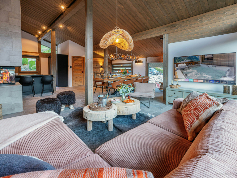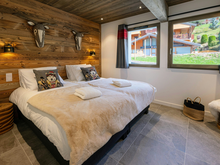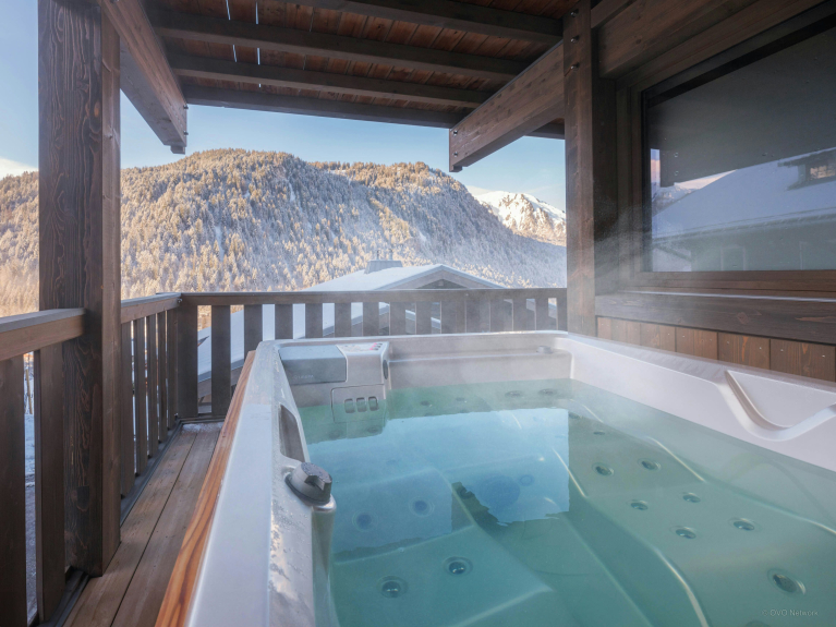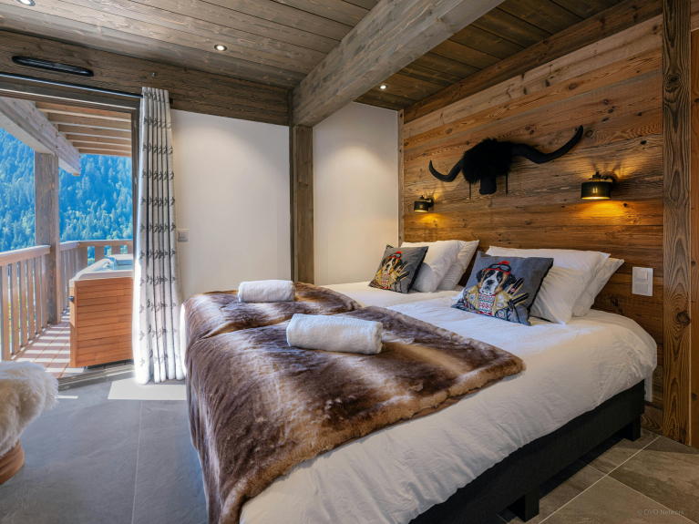 With 2 bathrooms and 3 bedrooms, which can be set up with a choice of king-size or twin beds, this accommodation is ideal for a large family or a group of friends wishing to discover the Alps. Two of the bedrooms open onto a balcony equipped with a Jacuzzi, the highlight of Chalet Amarou.