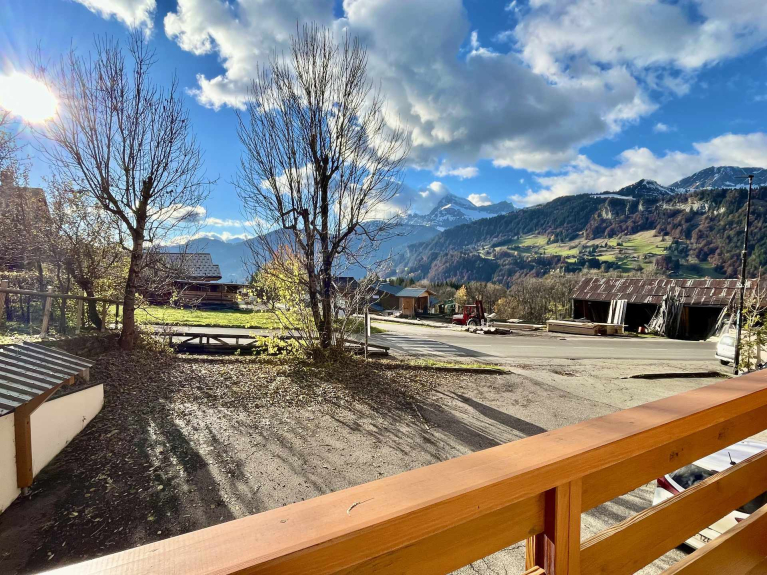 On the second floor facing Mont Charvin, very sunny, with sunsets over the mountains every day. You'll also appreciate its immediate proximity to the village center, shops and restaurants.
