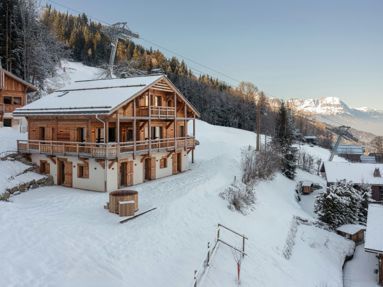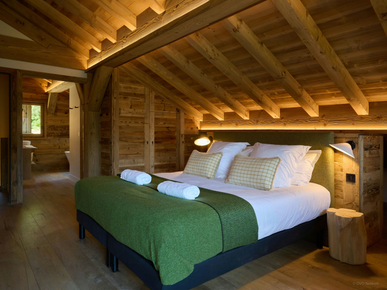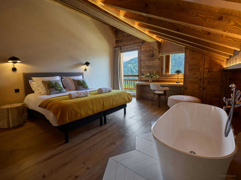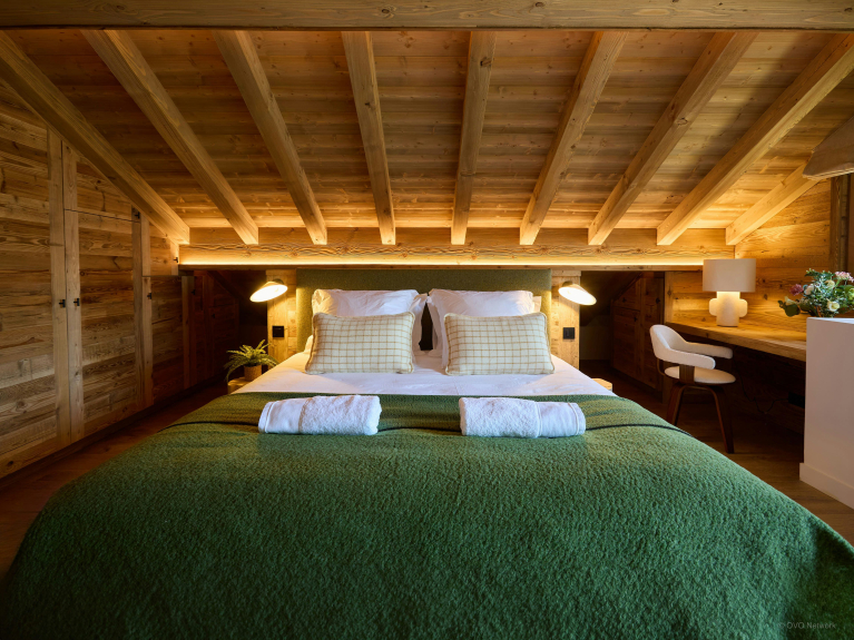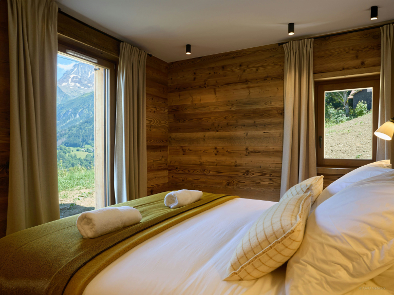 Despite its name, there's nothing small about this well-equipped chalet. There are three double bedrooms and a dormitory for four on the ground floor, and two sumptuous suites on the upper floor, each with a large bathroom, study and access to a balcony overlooking the Mont Blanc massif.