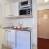 Kitchen equipped with 2 hotplates, mini oven grill, microwave, fridge, kettle, toaster and coffee maker.