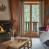 The living room features a large-screen TV, stone fireplace and dining table, and opens onto a terrace with a second dining table, inviting you to enjoy your meals in the sunshine.