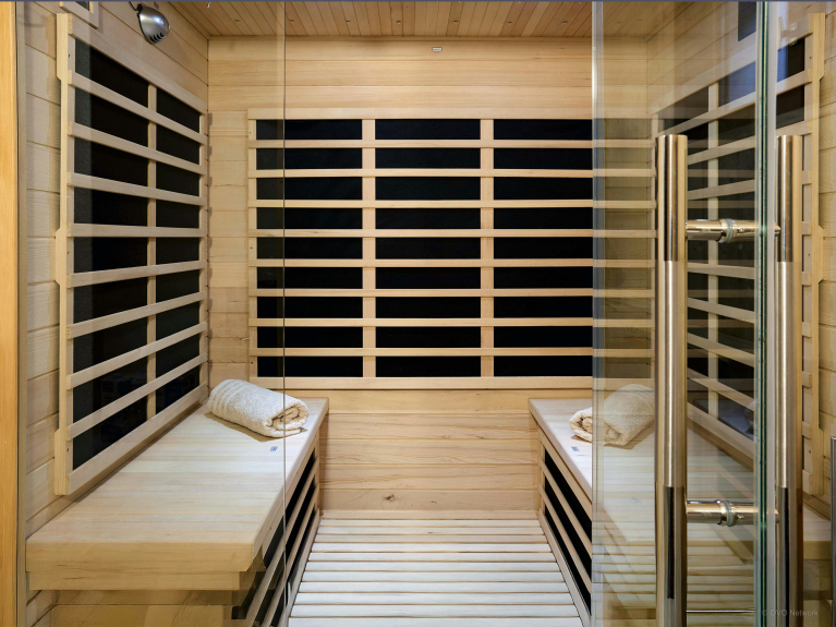 A first entrance leads to the living room, while a second entrance opens onto a ski room with heated boot dryer, which is particularly practical in winter.