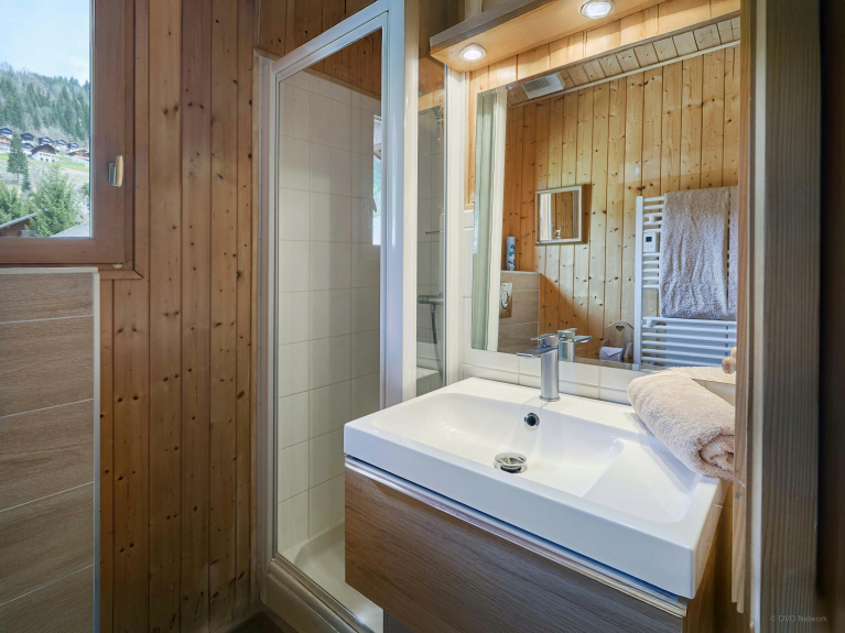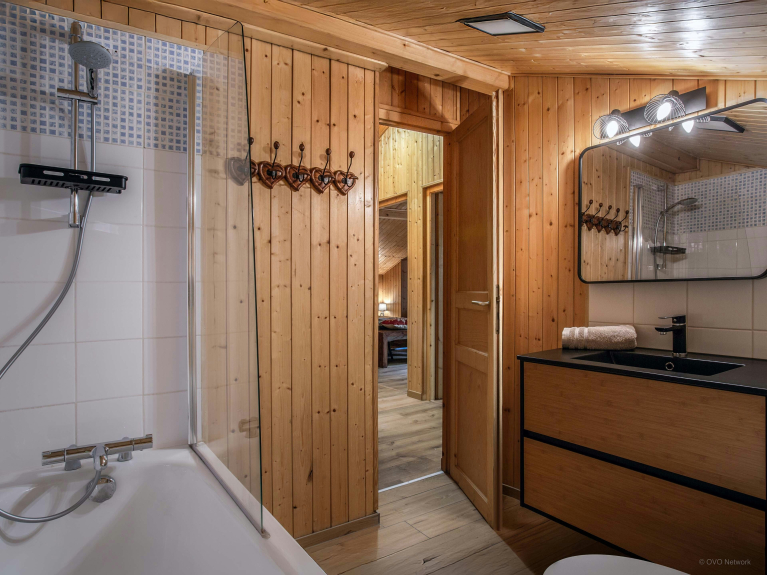 Chalet Rochamour has seven bedrooms and six bathrooms in all, spread over its three floors. A practical detail: each bathroom has its own toilet.