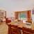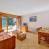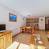 Open-plan kitchen with 4 ceramic hobs, fridge, microwave, dishwasher, coffeemaker, toaster, kettle.