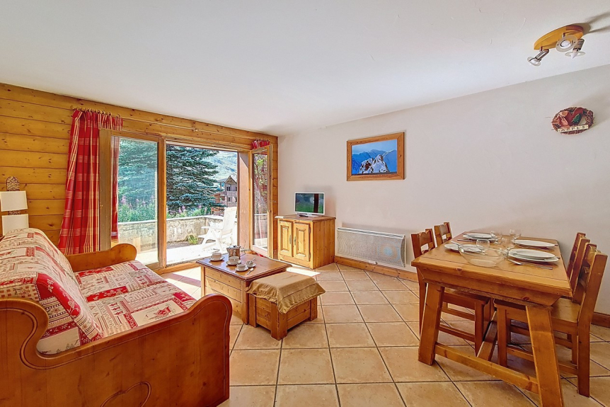 This residence, located at the entrance to the resort, captivates with its traditional Savoyard style. Come and discover its functional apartments, relaxation area with swimming pool, sauna, hammam, fitness room, ski store and free shuttle service to the resort center, 1km away.