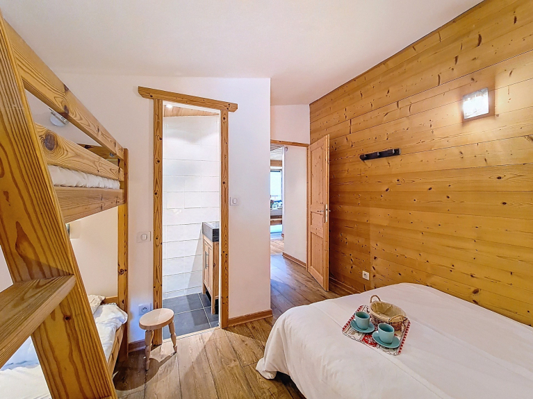 Cabin separated from the entrance by a door: 2 single bunk beds.