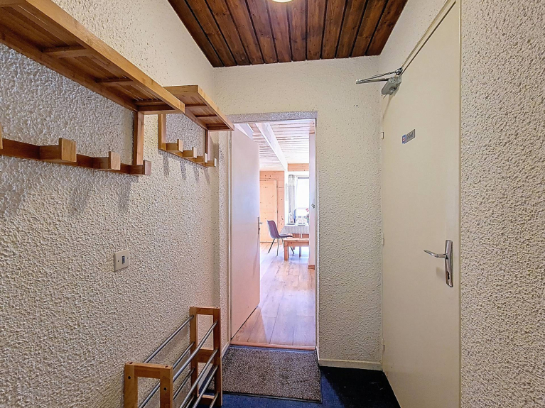 Very pleasant 3-room apartment with cabin, offering 70 m² of living space for 8 people. It is located on the 7th floor, facing west, with a beautiful view of the mountain range.