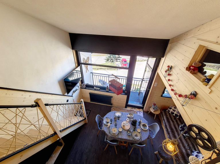 Bedroom 2 on mezzanine: 1 double sofa bed. Equipped with television.