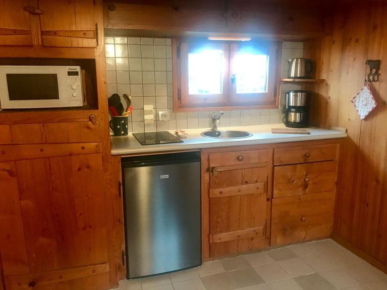 Pequeño chalet independiente situado en el corazón del pueblo, a 700 metros del pie de las pistas y con una parada de autobús de esquí a 50 metros.