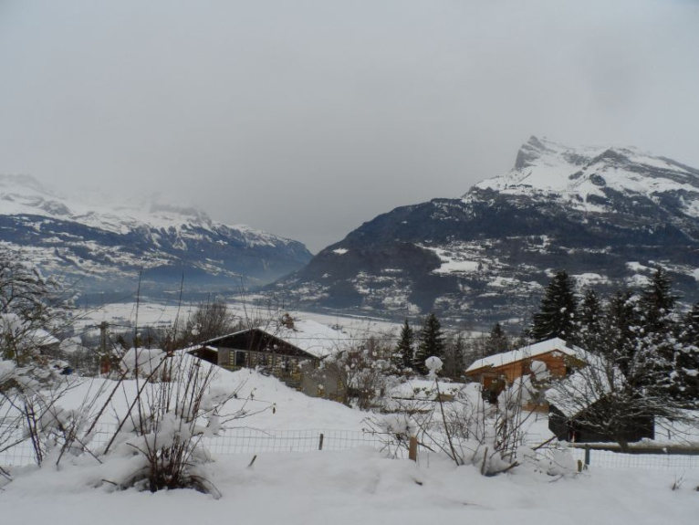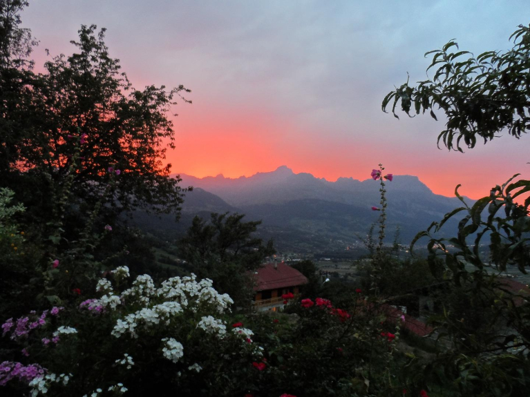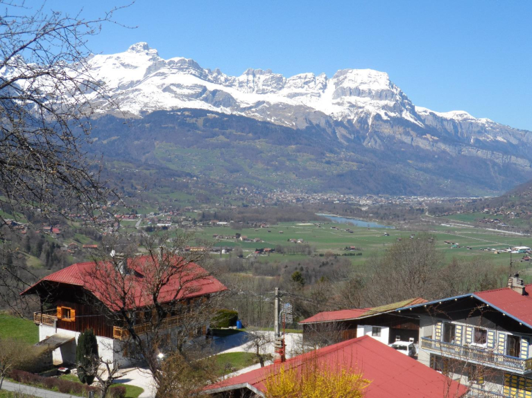 Magnífica vista sobre el valle y las cordilleras de Aravis y Fiz:
