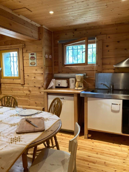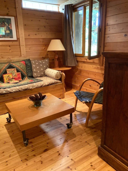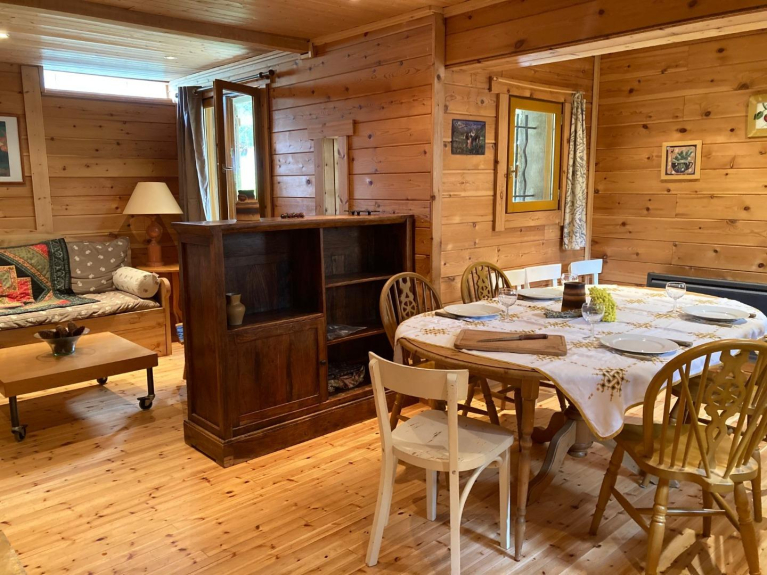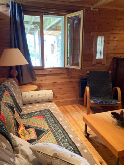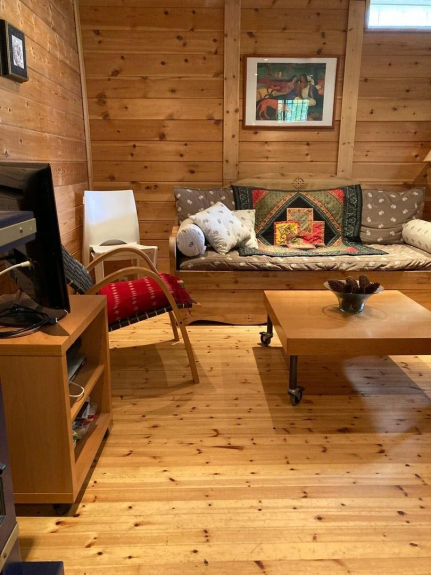 Base de chalet finlandés (todo de madera, mucho carácter). Terraza.