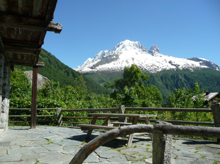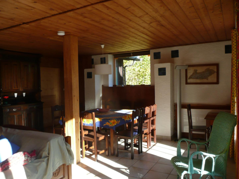 Haga su sueño realidad, pase sus vacaciones en un chalet con carácter, situado en una meseta a 1400 metros de altitud, en lo alto del valle de CHAMONIX, a 150 metros del pueblo de Trélechamp - Orientación sur, frente a la cordillera del MONT-BLANC Hermosa pradera entre el pueblo y el chalet