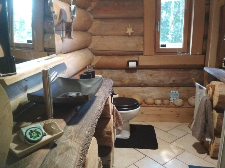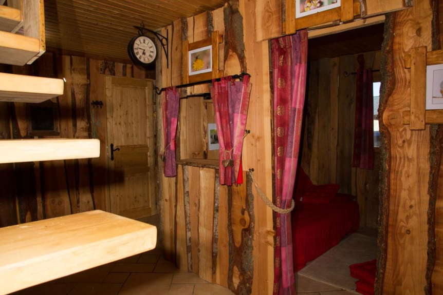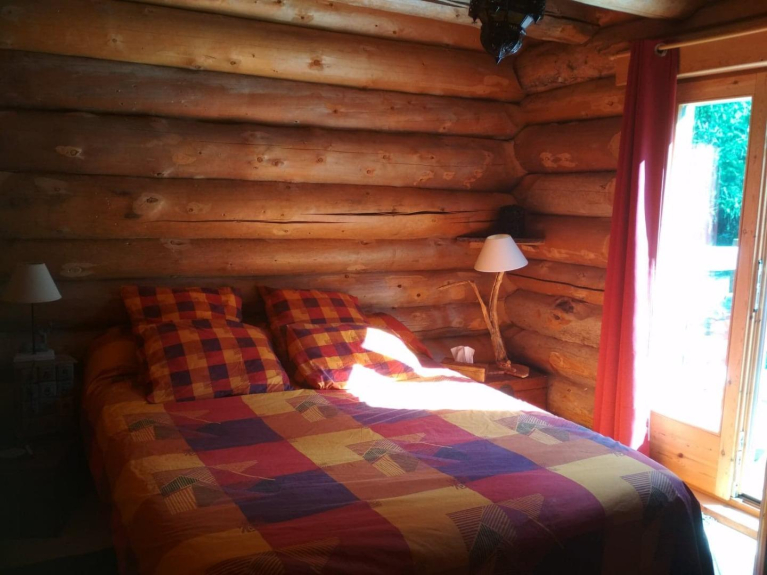 Construido a partir de fustes: troncos toscos, hechos a mano. Ecológica y saludable, le acogerá en una auténtica casa diseñada para vivir en familia, con todas las comodidades que pueda desear, en lugar de una de las propiedades de alquiler formateadas que florecen en las estaciones. Los dormitorios son auténticos dormitorios, incluido un dormitorio principal con vestidor y baño privado, y el sofá cama no está en el salón, sino en una habitación aparte: la biblioteca.