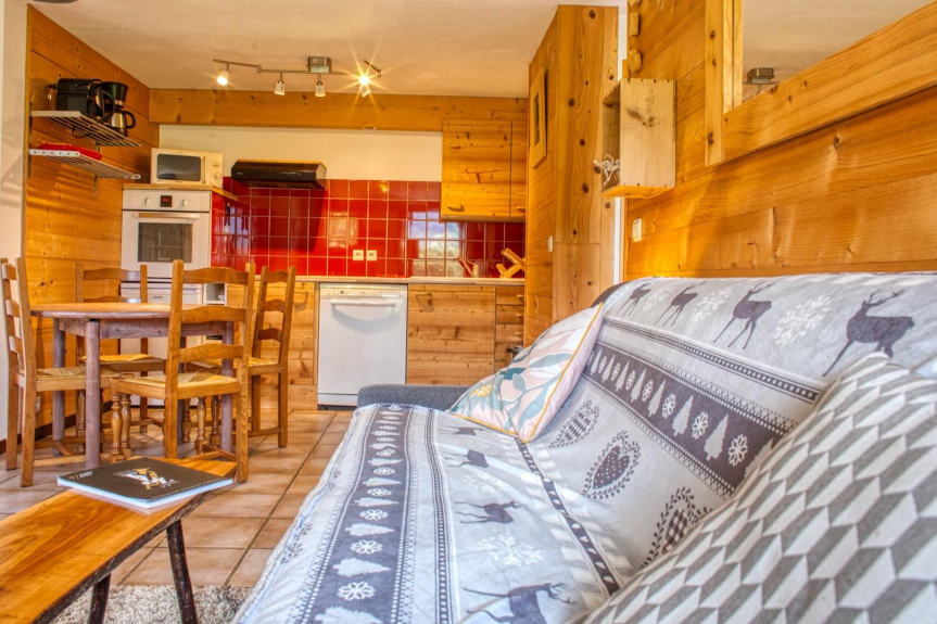Con capacidad para 4 personas y una superficie de 40 m2, la cálida habitación le acoge en dos camas individuales, la cocina está abierta al salón ofreciendo espacio y luminosidad en un entorno arbolado y cálido. Un sofá cama ofrece una segunda cama en el salón, equipado con una televisión TNT y un acceso Wifi gratuito incluido. La cocina está equipada con horno, lavavajillas, vitrocerámica, nevera y microondas. El aseo está separado y el baño está equipado con una ducha.