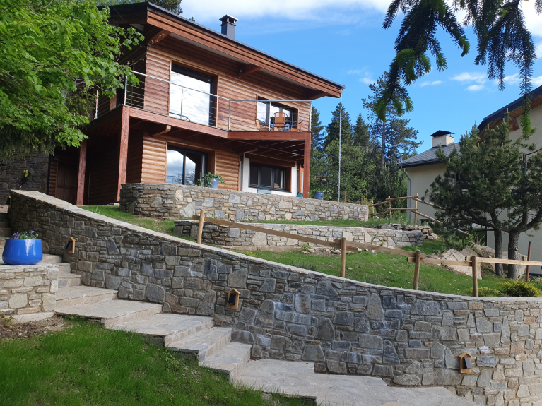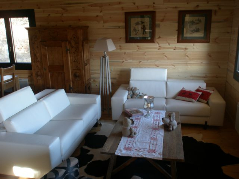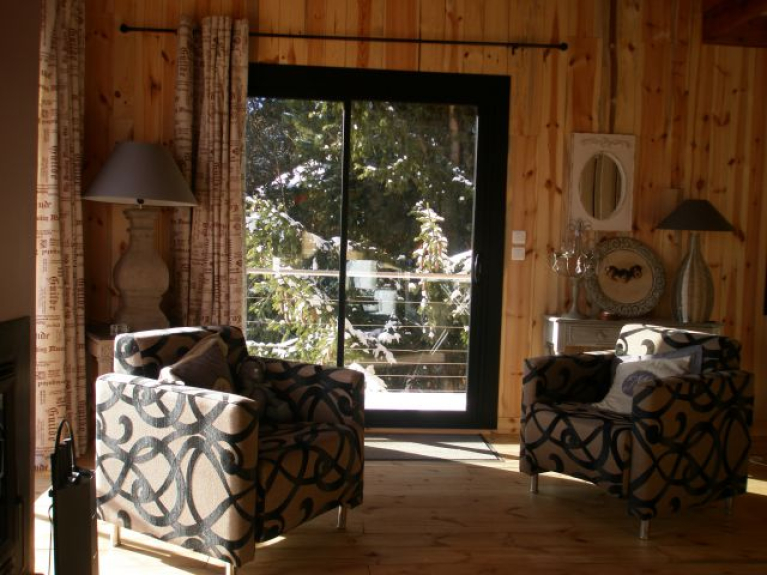 El chalet, con su zona de relajación (sauna y spa), fue completamente renovado a finales de 2010 y combina materiales y diseño tradicionales. Situado a 1800 m de altitud en una zona boscosa y muy tranquila, tiene una hermosa vista de la Cambre d'Aze y de las montañas circundantes desde el gran salón y la soleada terraza.