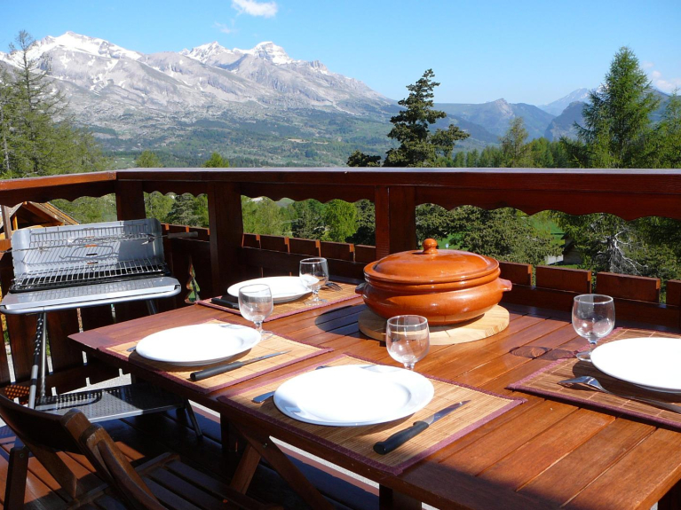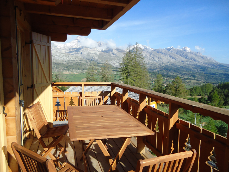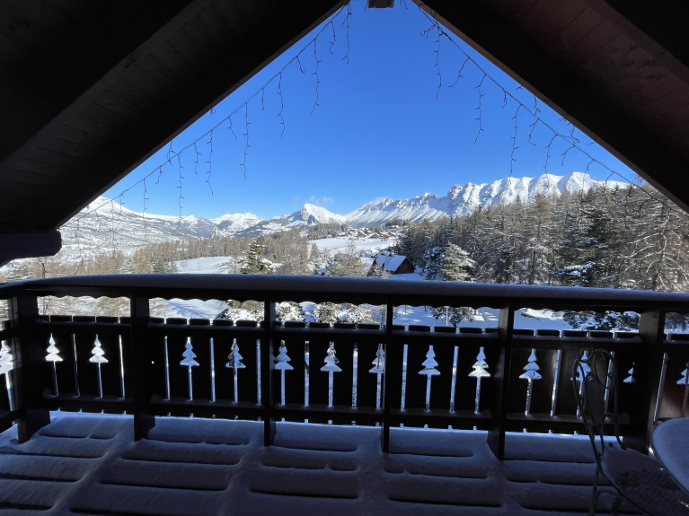 Chalet en alquiler de madera maciza, con equipamiento de alta calidad, a menos de 5 minutos a pie de la zona de esquí y de los comercios, con una magnífica vista en la estación de La Joue du Loup, que se encuentra en el corazón del Dévoluy.