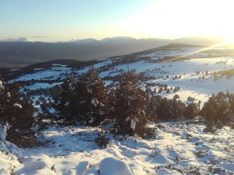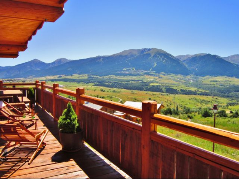 Los grandes ventanales permiten aprovechar el sol y la hermosa vista sobre los 100 km de los Pirineos y las estaciones de esquí francesas y españolas.