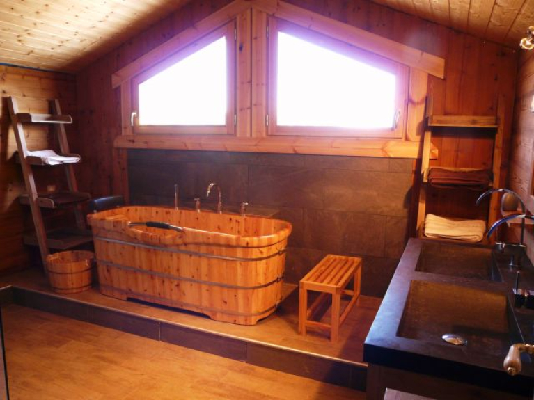 Gran sauna de piedra caliente para 8 personas, gimnasio (con banco de pesas, bicicleta y silla de masaje), una terraza en la planta baja (30 m2 ) y dos grandes balcones con vistas panorámicas y sin obstáculos de las montañas (5 estaciones visibles desde el chalet).