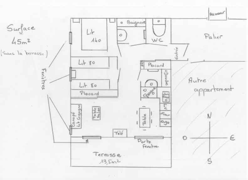balcón equipado con mesa y sillas, con una superficie de 13,50 m², que permite tomar las comidas en él