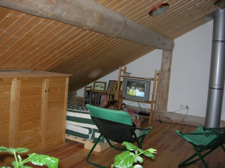 Entreplanta, chimenea, terraza y vista