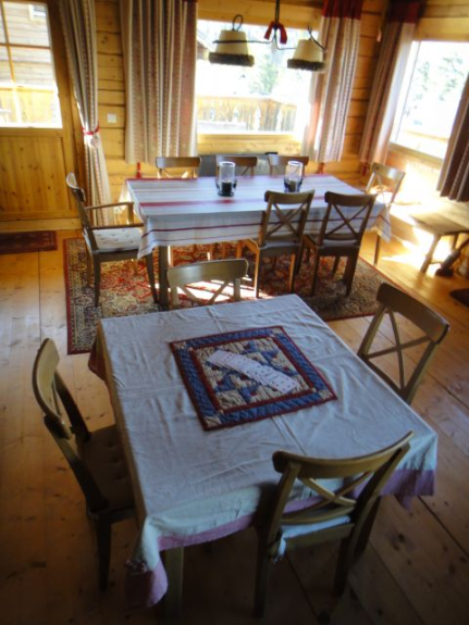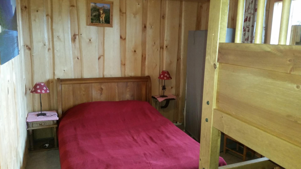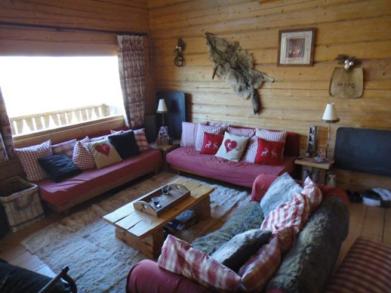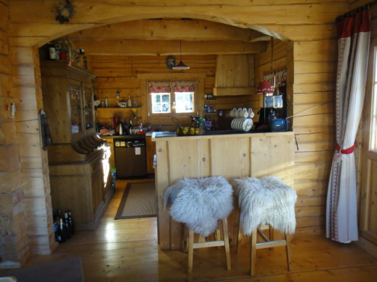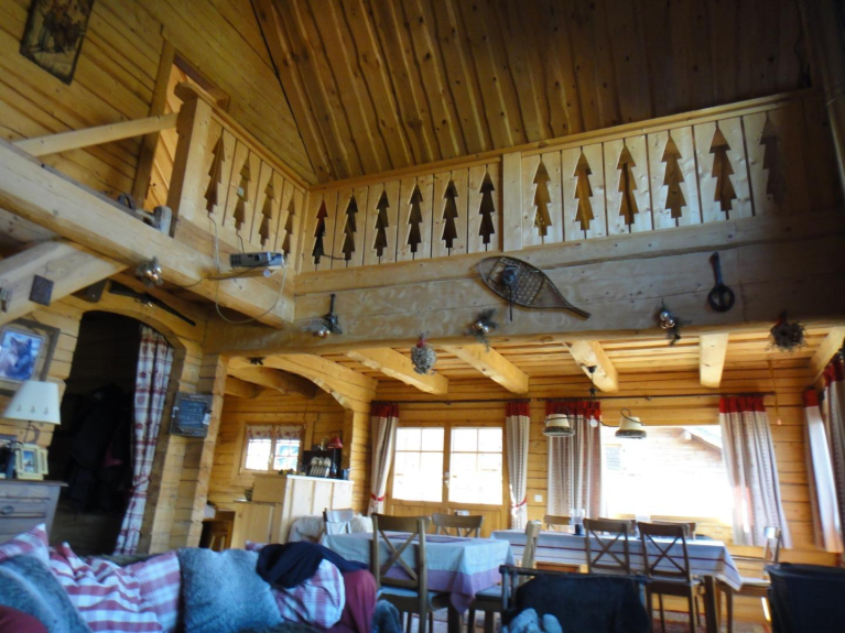 Chalet totalmente equipado, estufa de leña, calefacción eléctrica, cocina, amplio salón, sala de estar, zona de juegos y comedor, y 1 aseo independiente.