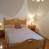 En la habitación de la derecha: cama doble, mesita de noche, dos lámparas de cabecera, armario, suelo Quickstep, ventana con vistas a la plaza del cine.