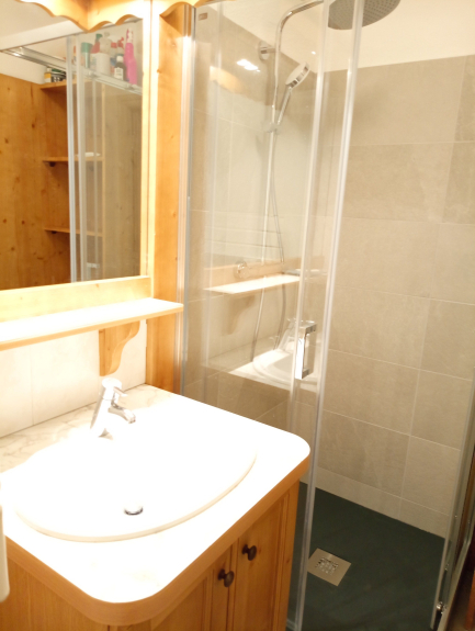 Se encuentra en la primera planta del edificio 'le Carrelet' (junto con le Pra) y tiene vistas directas a las pistas. Muy bien situado.