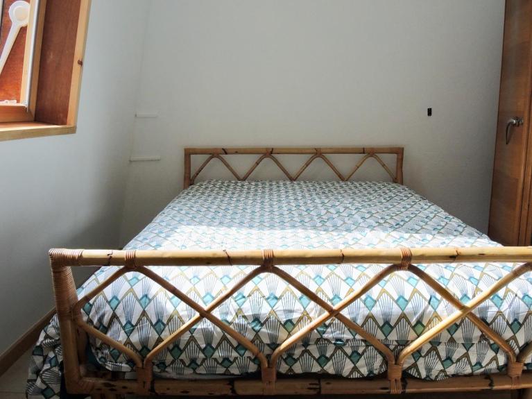 - un dormitorio doble muy luminoso con una cama doble de bambú y un armario de roble. Esta habitación dispone de un aseo (cerrado) equipado con un lavabo y una lavadora nueva.