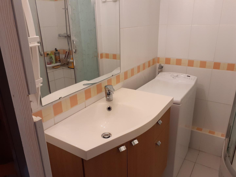 Todo confort. Salón con cocina americana y sofá cama, habitación individual con cama de matrimonio, baño - WC - lavadora,