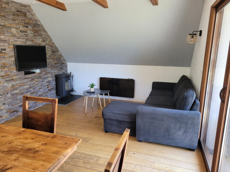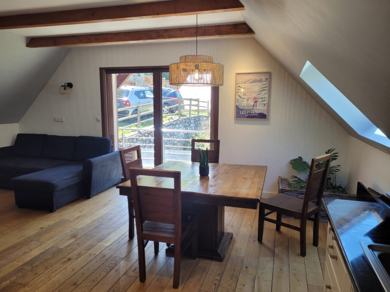 Sus características: estufa de leña, 1 televisor HD de pantalla grande en el salón con home cinema, 1 dormitorio con televisor equipado con reproductor de DVD, acceso a Internet, cocina totalmente equipada (lavavajillas, horno, microondas, nevera-congelador, placa de inducción, juegos de raclette y fondue), sala de esquí, una terraza exterior orientada al sur con una vista panorámica del valle de Aure, 1 cuarto de ducha, 1 baño, barbacoa, ... todas las comodidades de una casa rural de alta gama en un entorno tranquilo en plena naturaleza.