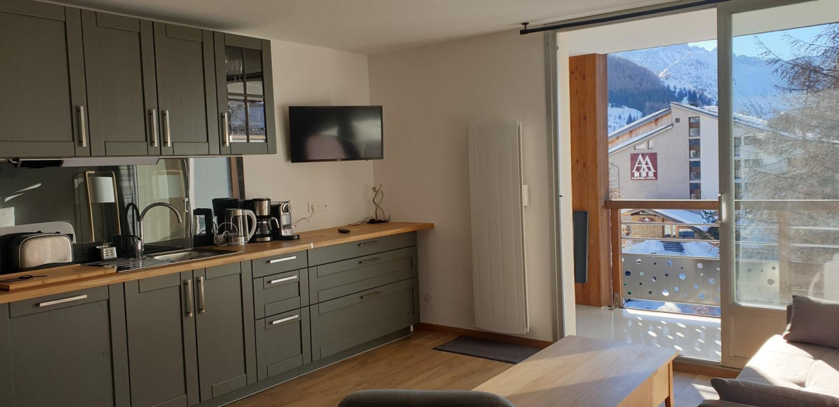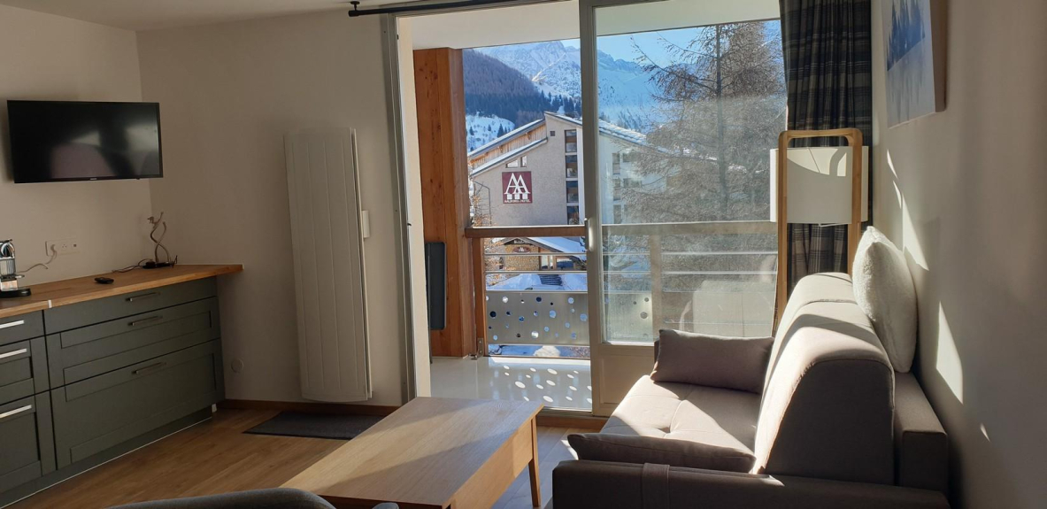 Magnífico estudio a pie de pistas, orientado al sur, con una vista clara del glaciar y de las pistas.