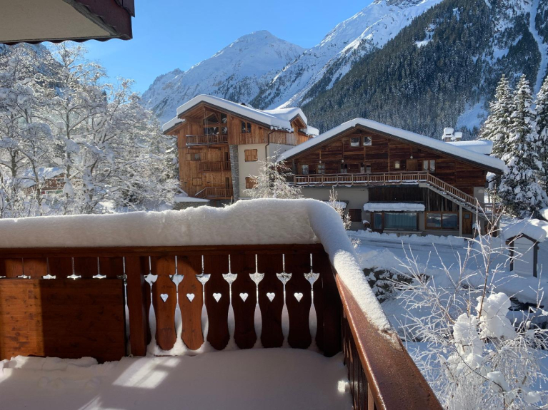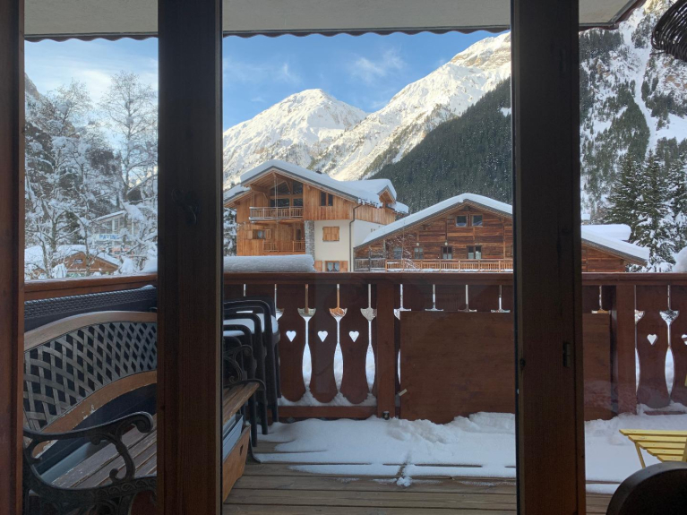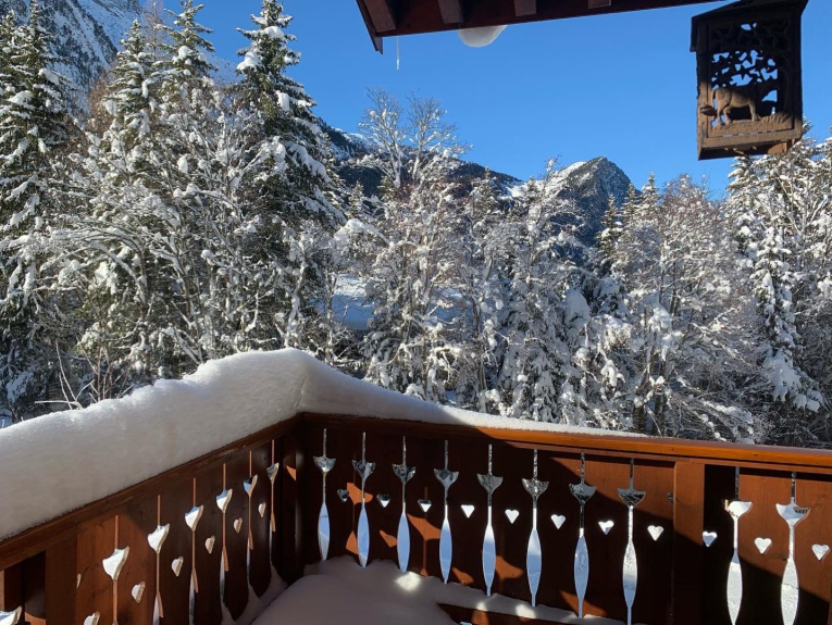 Salida con esquís. Ubicación excepcional frente a la montaña, el Doron y el jardín del chalet.