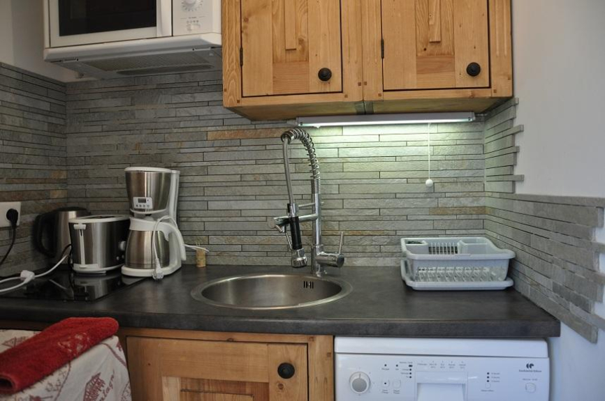 1 cocina equipada con placa eléctrica, microondas, mini horno-parrilla, lavavajillas, nevera grande, cafetera eléctrica, tostadora, máquinas de raclette y fondue.