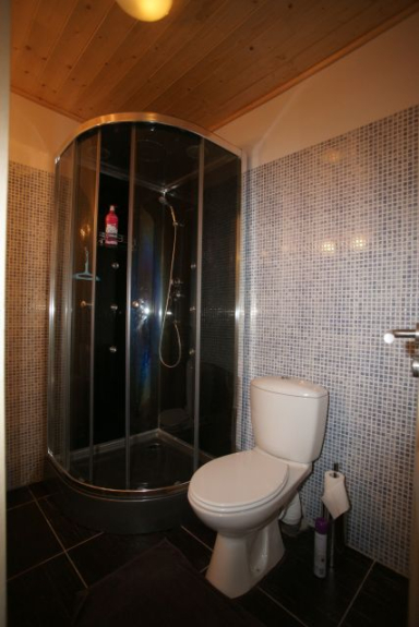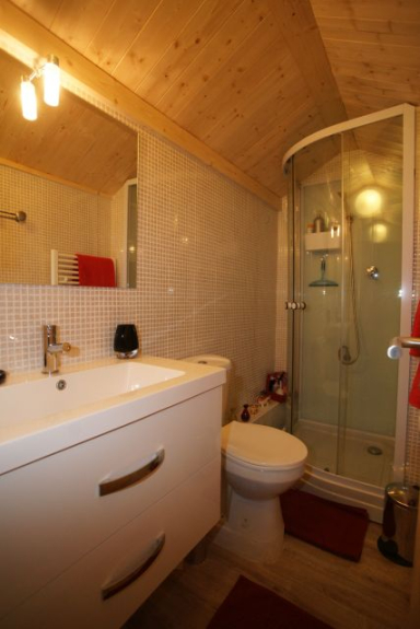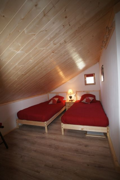 2 habitaciones con 2 camas en 90 cm y 1 cama en 140 cm 1 armario de arreglo, 1 sala de agua con WC 1 cabina de ducha, 1 lavabo sobre mueble.