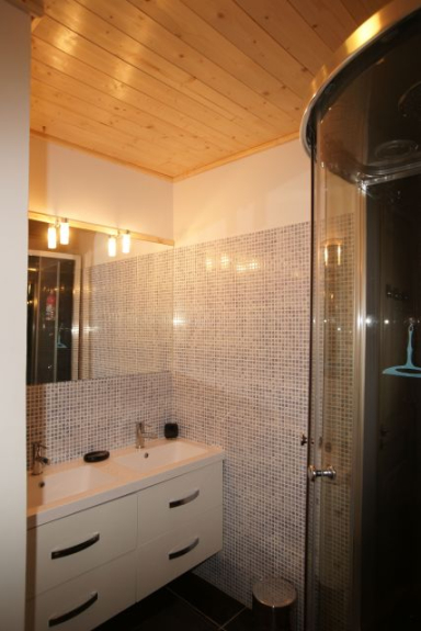 1 habitación de agua con ducha, 2 lavabos con mueble, 1 wc.Escalier en colimaconectando el 1 st .