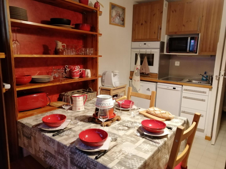 Cocina totalmente equipada (vitrocerámica, lavavajillas, horno multifunción, microondas...), dormitorio, zona de montaña separada del salón, baño (bañera/ducha) y wc separado, balcón, guardaesquís (ascensor). Plaza de aparcamiento reservada, Wifi