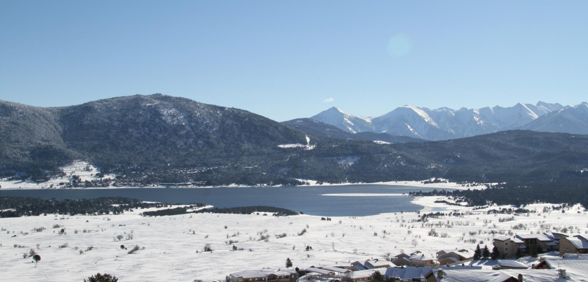 Vista sobre el lago de Matemale, las pistas de esquí, el antiguo pueblo