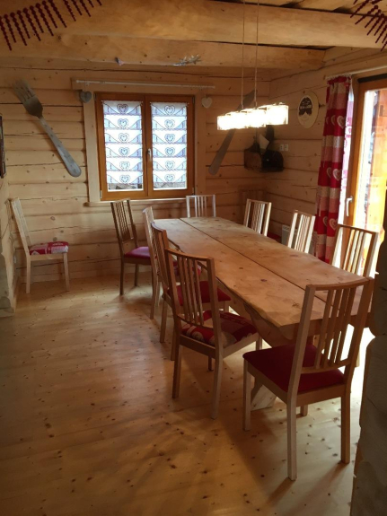 Una zona de comedor con una gran mesa