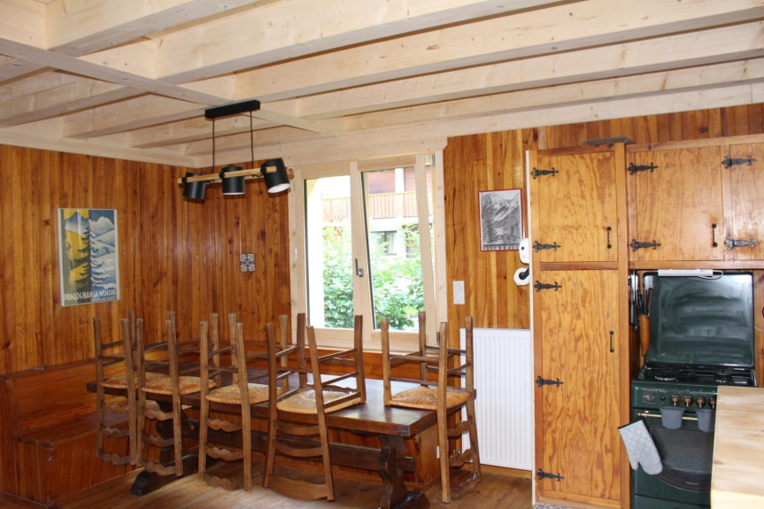 Chalet familiar en una tranquila aldea cerca del centro con garaje climatizado que incluye lavadora; secadora; guardaesquís; muebles de jardín
