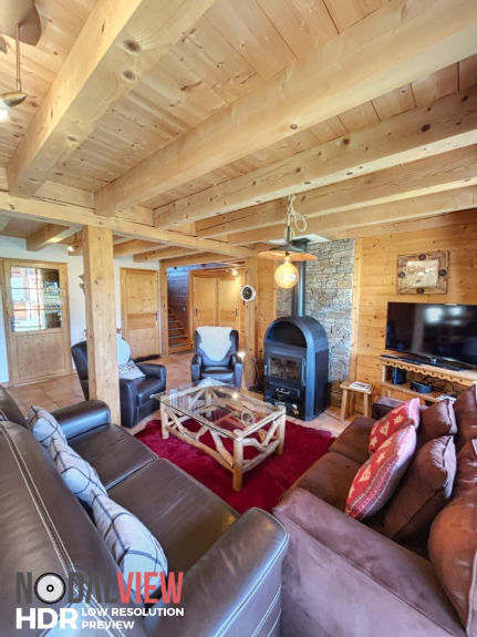Confortable y espacioso, este chalet de más de 200m², consta de un salón de 50m², 3 dormitorios, 1 cuarto de ducha, 2 WC en la planta baja, entresuelo, arriba un gran cuarto de baño con bañera y WC, balcón, y un gran campo al lado para que los niños puedan ir en trineo. Sol máximo. Orientación sur. Refugio para 2 coches.
